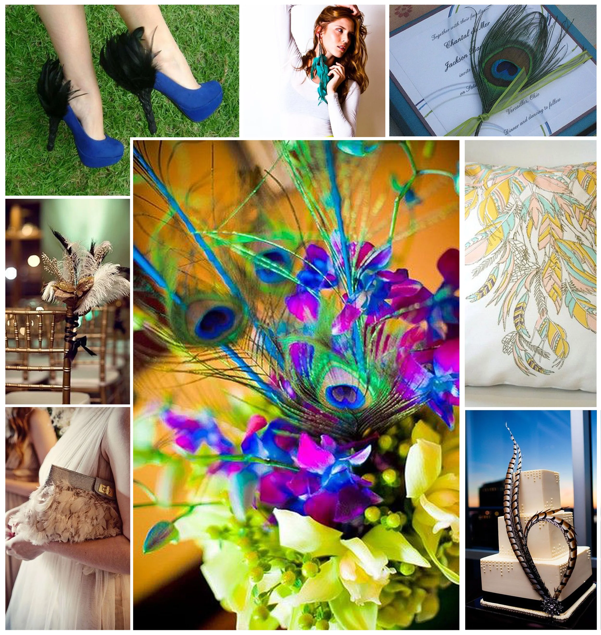 Fashion and Feathers flocking together! From earrings, bags and shoes to pillows and wall décor, feathers are fluttering in all aspects of the style world! The feather fad has grown into a full-blown fashion phenomenon. Big, small, thick, thin, there is no shortage of variety with this exquisite item, making it easy to be that major statement piece needed to transform any outfit, event, home or wedding. Soar above the norm with a fabulous feathered cape or wedding dress. Add a beautiful peacock feather to your wedding invitation for the perfect touch of elegance and color. Place them in your bouquet, cake or table décor to add a whimsical appeal. And if you are feeling extra inspired, feather-ize your home with an elaborate wall hanging. They can be beautiful and delicate, or daring and bold — you decide! A little feather goes a long way...