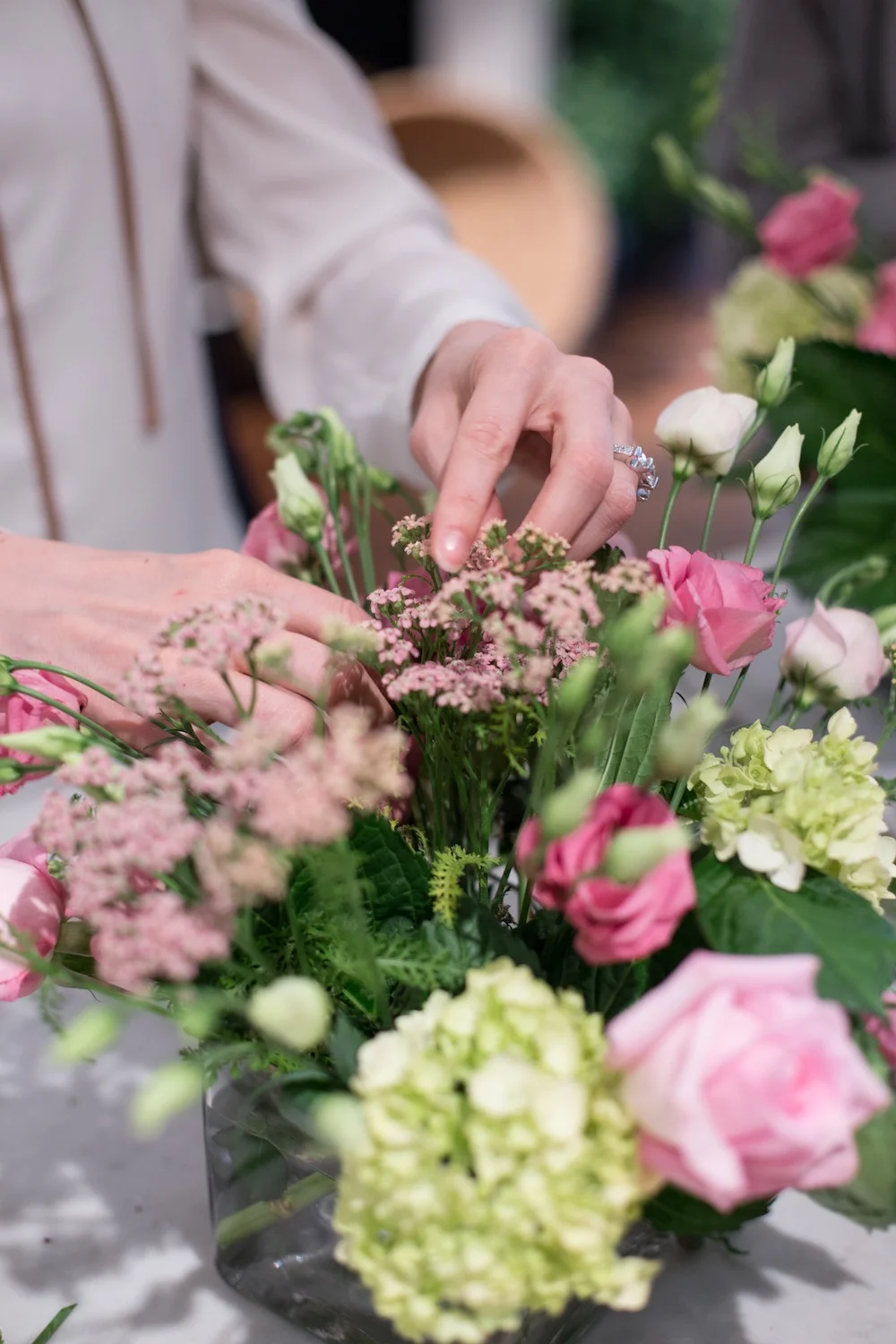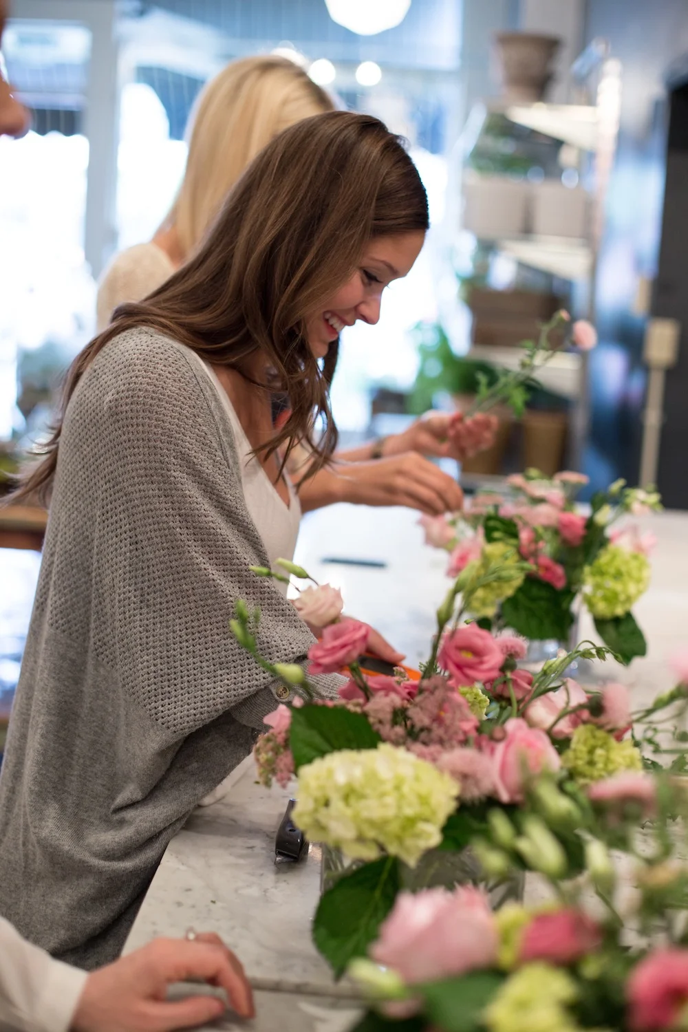 Last week, our team had the opportunity to learn how to arrange beautiful flowers from pro, Amy Backman of Spruce Flowers and Home! Spruce's "living with flowers" class taught us everything we need to know to make our very own home arrangement {with the help of gorgeous pinks and greens, compliments of Spruce}. Amy shared with us her floral arranging bits and tips including how to select the just-right flowers and vase, how to accurately cut the stems, and the ins and outs to proper flower placement. Thanks more here to Amy for sharing her secrets–we can't wait to put our new skill to the test by arranging one of our very own! Check out some behind the scenes shots from our Living With Flowers class captured by the talented Molly Smith Photography.